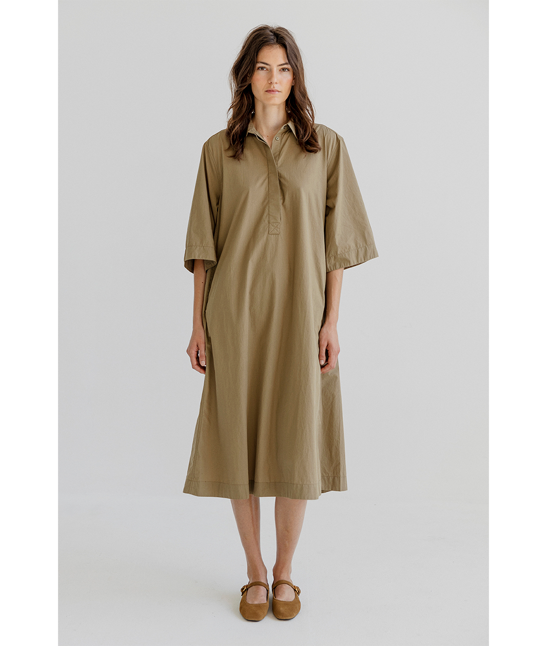 Aj 117 Project Hari kjole palemossKlassisk kjole i smuk blå nuance fra Project AJ117. Kjolen er lavet i en let og luftig økologisk bomuld, samt en afslappet pasform. Den har krave og skjult stolpelukning med knapper, samt dejlige lommer i sidesømmene. Kjolen har en behagelig pasform der falder pænt, med et elegant læg på ryggen. Ærmerne er trekvart lange. Must have til sæsonen vi går i møde.