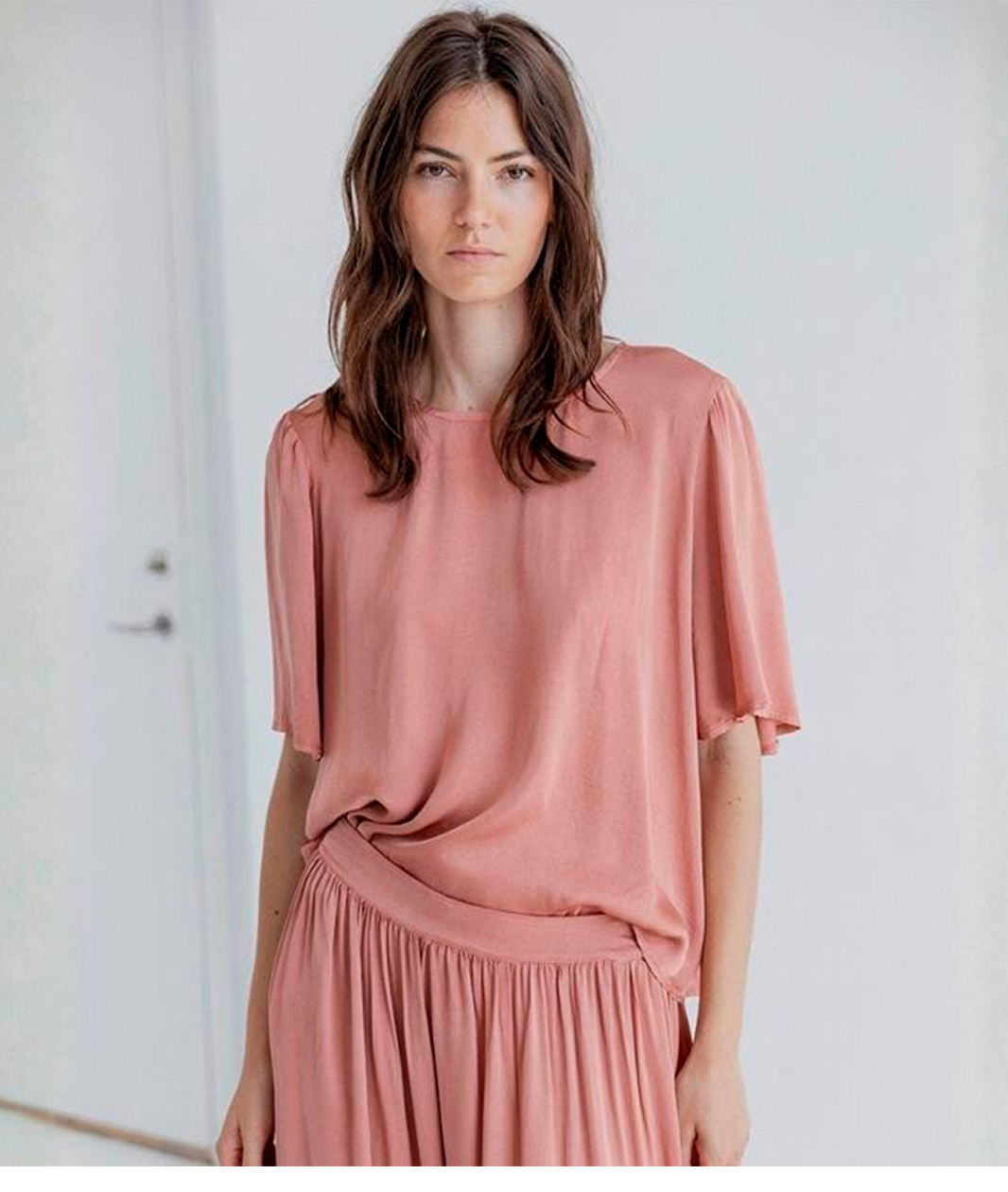 Bluse i smuk old rosa fra Project AJ117. Blusen er designet i en flot silke/viscoseblanding og med et feminint look. Den har rund hals og en slids bagpå med en knaplukning. De små læg ved skuldrene og sommerfugleærmerne gør den let at style. Detaljer: