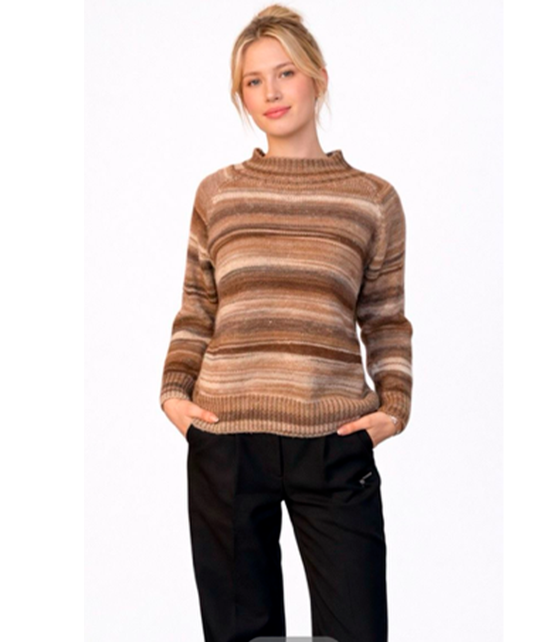 Lækker multifarvet strik til de lidt kølige dage. Strikken er fremstillet i en blød og varm kvalitet med 54 % uld, der giver både komfort og åndbarhed. Den høje krave beskytter mod kulden, og den korte pasform gør den perfekt til dine højtaljede bukser. En farverig klassiker, der tilføjer et frisk touch til din efterårsgarderobe.