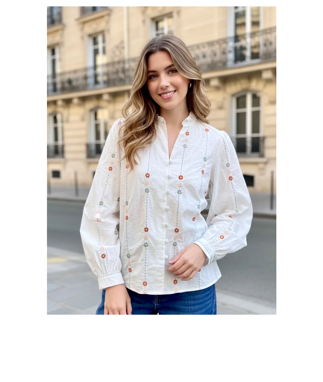 by Lund skjorte Line whiteFeminin skjorte med broderet fine blomster på, gennemknappet, med overbetrukket knapper og en fin lille flæse krave,som giver et klassisk og stilfuldt udtryk.