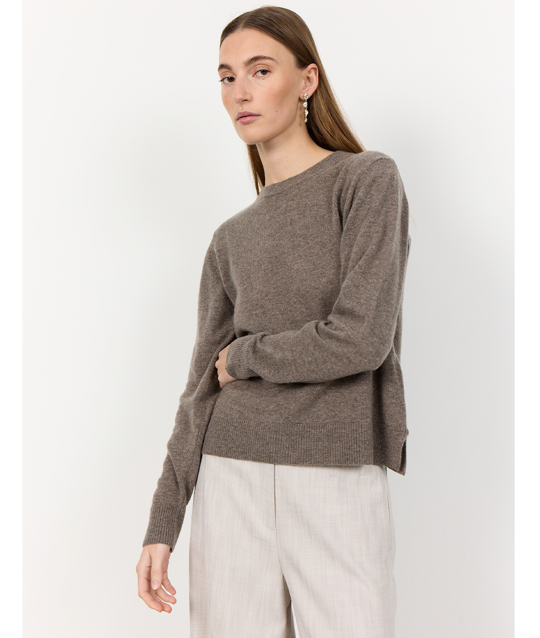Leveté Elois 2 casmere Brown strikLR-ELOISE 2 løfter hverdagskomforten med sin pullover, der er omhyggeligt fremstillet af 100 % kashmir. Pulloveren har en klassisk rund halsudskæring, ribbede detaljer ved manchetter og forneden og en blød, luksuriøst glat tekstur, der komplementerer den afslappede pasform. Sæt den sammen med skræddersyede bukser, eller tag den over en skarp skjorte for et raffineret look, der passer perfekt til afslappede og formelle sammenhænge.