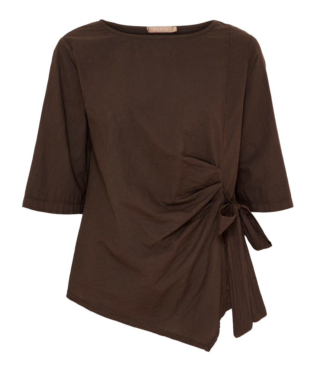 Super fin bluse fra Marta Du Château med sløjfe detalje i siden. Modellen skærer asymmetrisk både foran og bag. Helt perfekt bluse til både hverdag og finere brug.