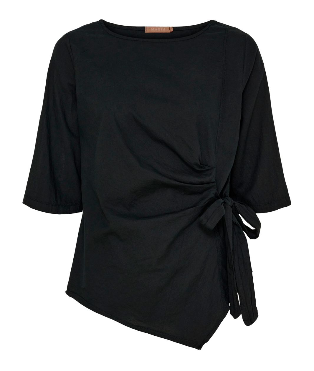 Super fin bluse fra Marta Du Château med sløjfe detalje i siden. Modellen skærer asymmetrisk både foran og bag. Helt perfekt bluse til både hverdag og finere brug.