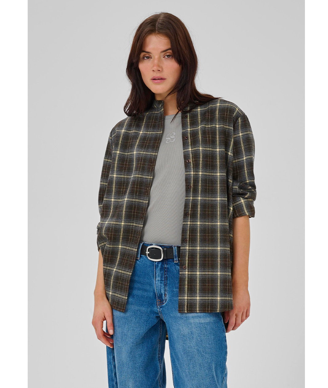 Denne skjorte til kvinder har et afslappet snit og giver komfort og alsidighed til hverdagsbrug. Designet med lige pasform, knaplukning, lange ærmer og en moderne ståkrave.