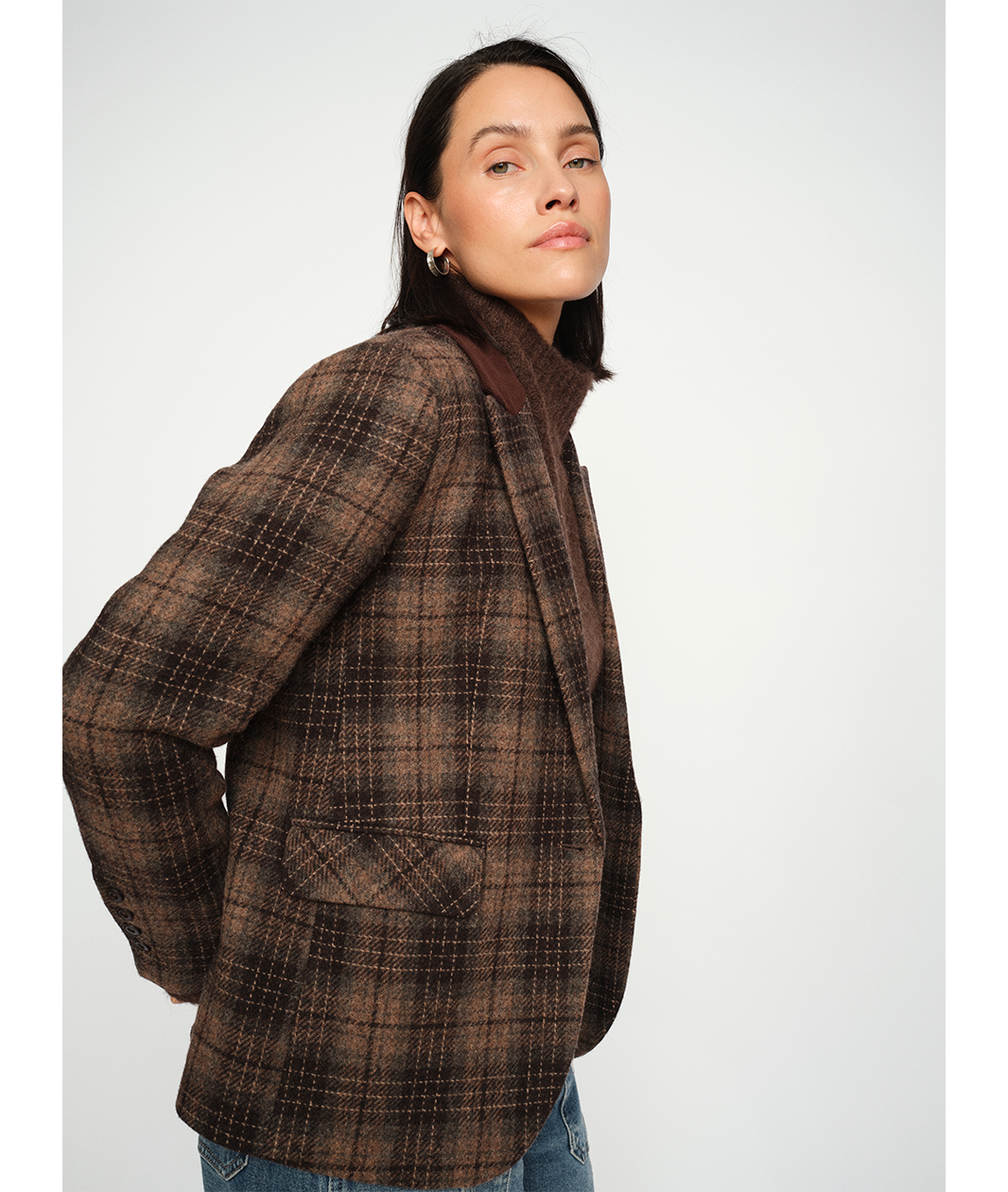 Mos Mosh Elivia Chez blazer brackenDenne klassiske blazer har en flatterende, normal pasform og er vævet i et rigt ternet mønster med diskret tekstur. Fløjlskraven tilføjer et luksuriøst touch og løfter det tidløse design med et moderne twist. Den er detaljeret med klaplommer, lukning med én knap og glat for, der gør den nem at have på i flere lag. Kombiner den med jeans for et afslappet look eller med skræddersyede bukser for et elegant sæt.