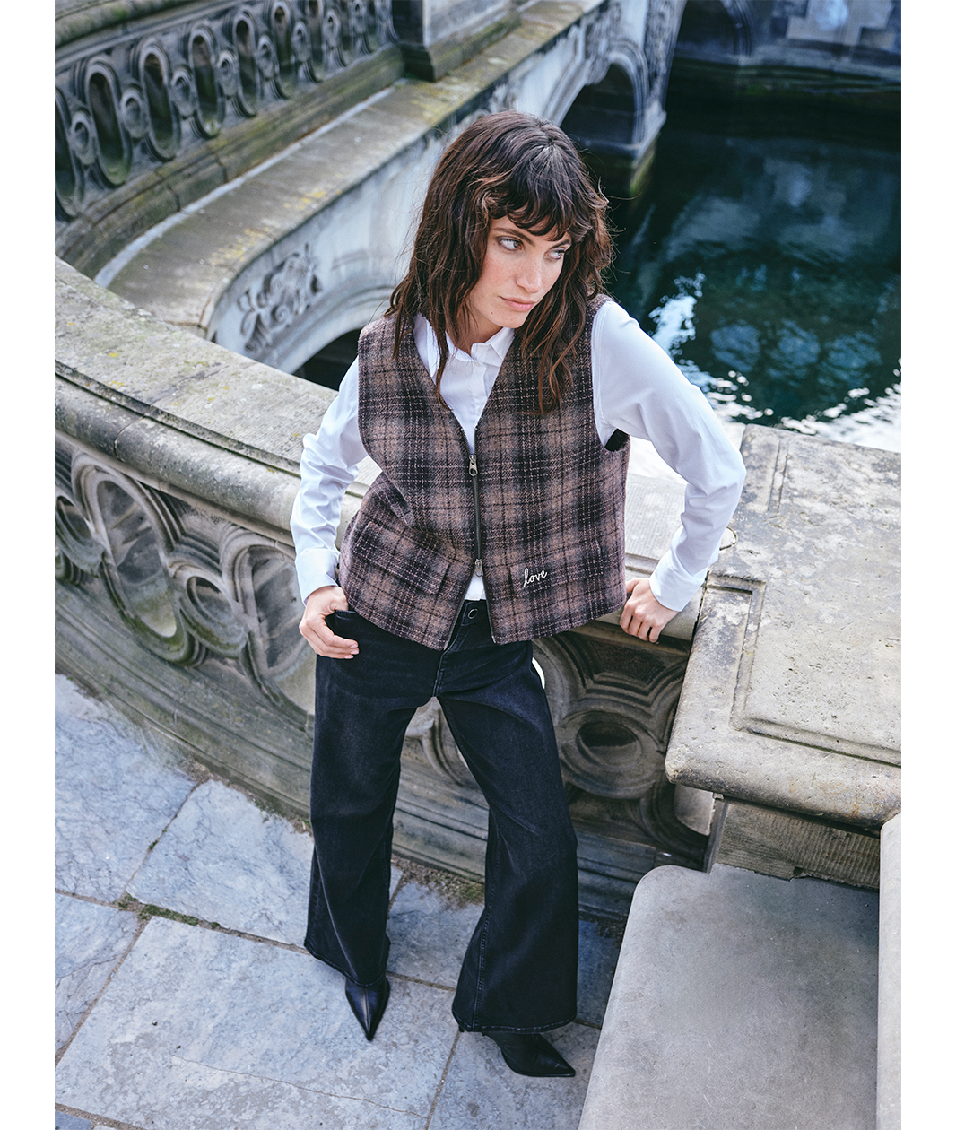 Mos Mosh Runa Chez vest brackenDenne vest med et ternet mønster føles både klassisk og cool. Designet med en elegant lynlåslukning, lommer med klap foran og diskret "love"-broderi — et karakteristisk MOS MOSH-præg. Perfekt til at have på over skjorter, strik eller under din yndlingsfrakke, når vejret skifter. Et alsidigt stykke tøj med personlighed.