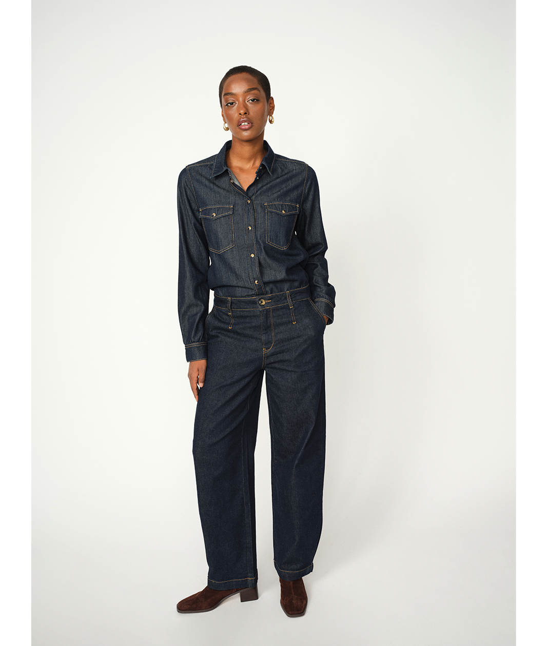 Mos Mosh Tino Chino Jeans dark blueDisse chino-inspirerede jeans er et must-have i denne sæson. Designet i et afslappet mom fit med høj talje i en dyb mørkeblå vask med kontrasterende tobakssyninger. Færdiggjort med klaplommer bagpå. Kombiner med en